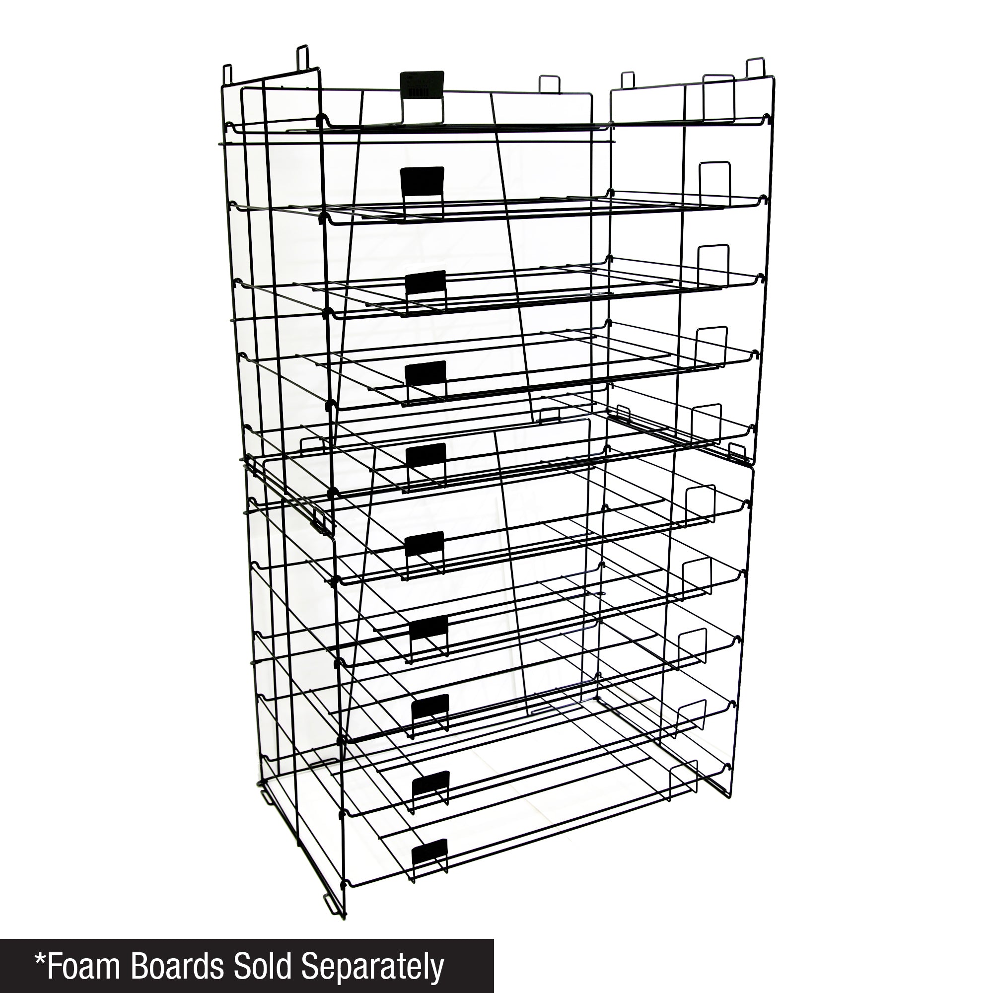 BRILLIANT DESIGN. Assembled Size: H 56 x W 32 x D 21.5 Inch. Dimension of tray: 20 X 30 Inch. Interval Gap between each slot: 5 Inch. Feature 10 slots. (Paper boards are not included)
