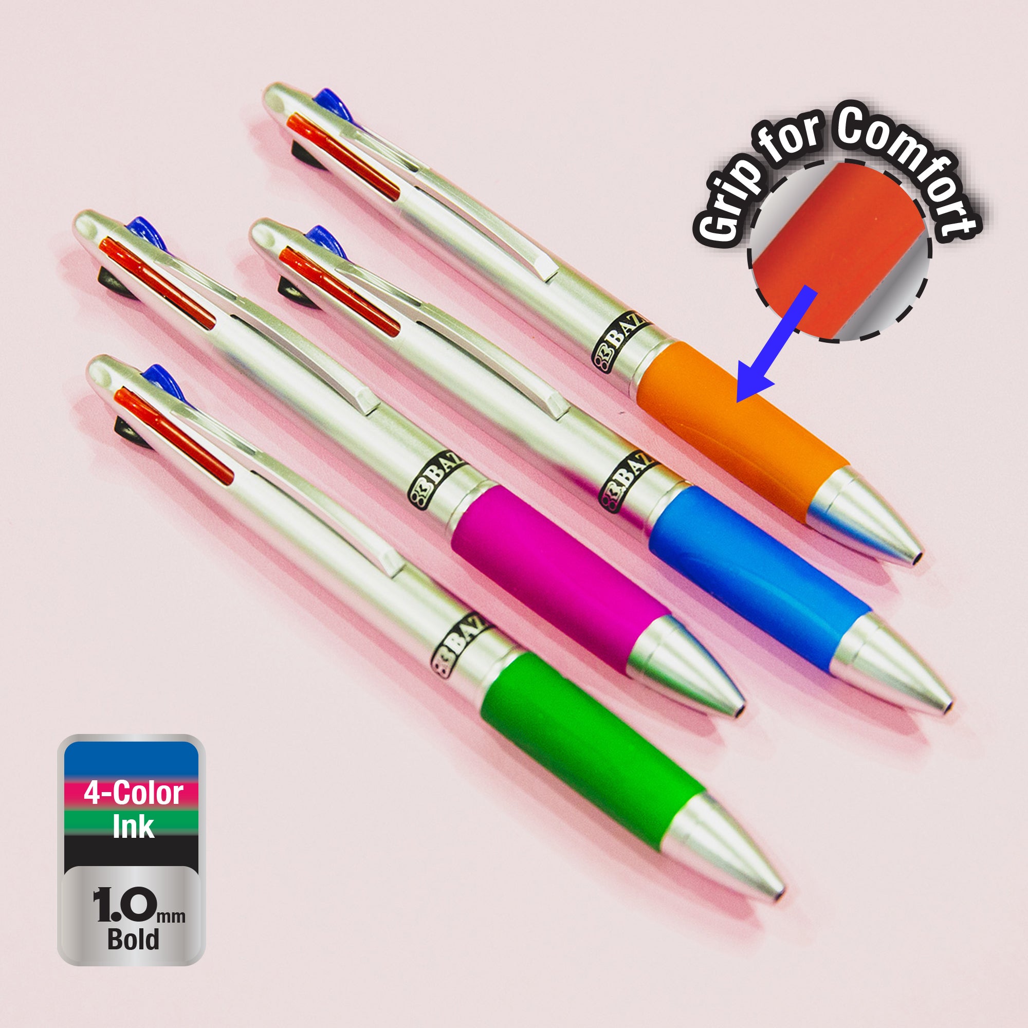 DESIGN. Frosted transparent barrel provides a glimpse of the ink level, making sure you never use an empty pen. Each pen is fitted with cushion grip for comfortable writing.