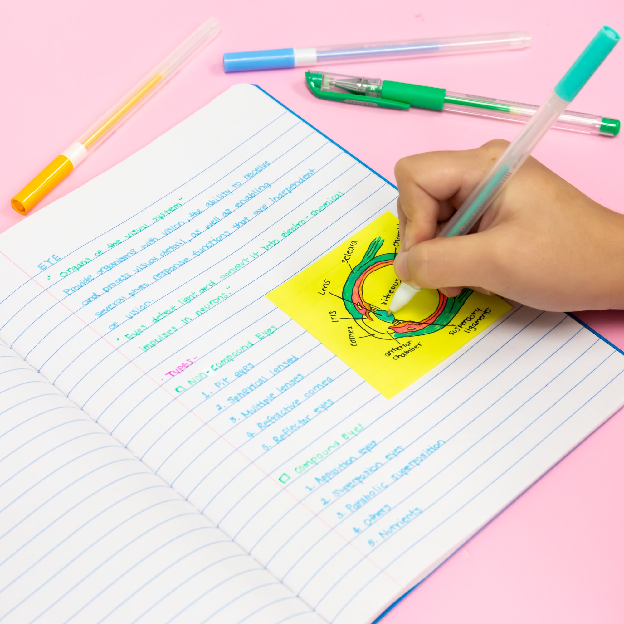 DIFFERENT COLORS. Notebooks have 4 different colors; Yellow, Red, Green and Blue. You can distinguish different subjects by color coding. Actual Colors May Vary!