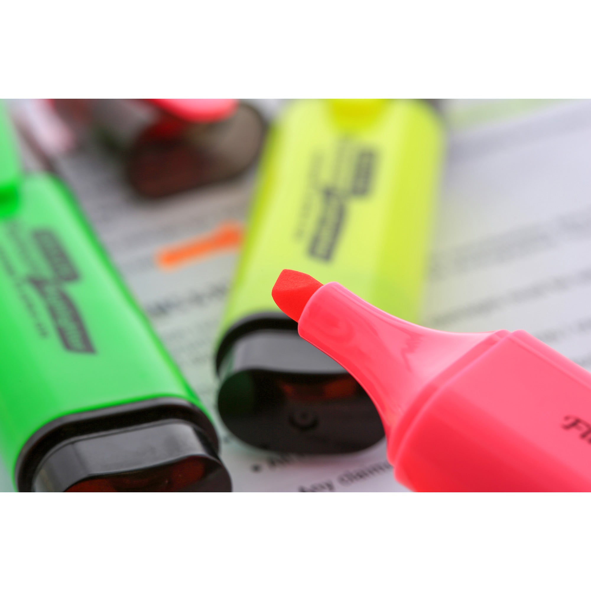 • VERSATILE CHISEL TIP. Highlighter has a molded narrow chisel tip which allows two line widths. Broad-line for highlighting and Fine-line for underlining details with just a twist of the wrist.