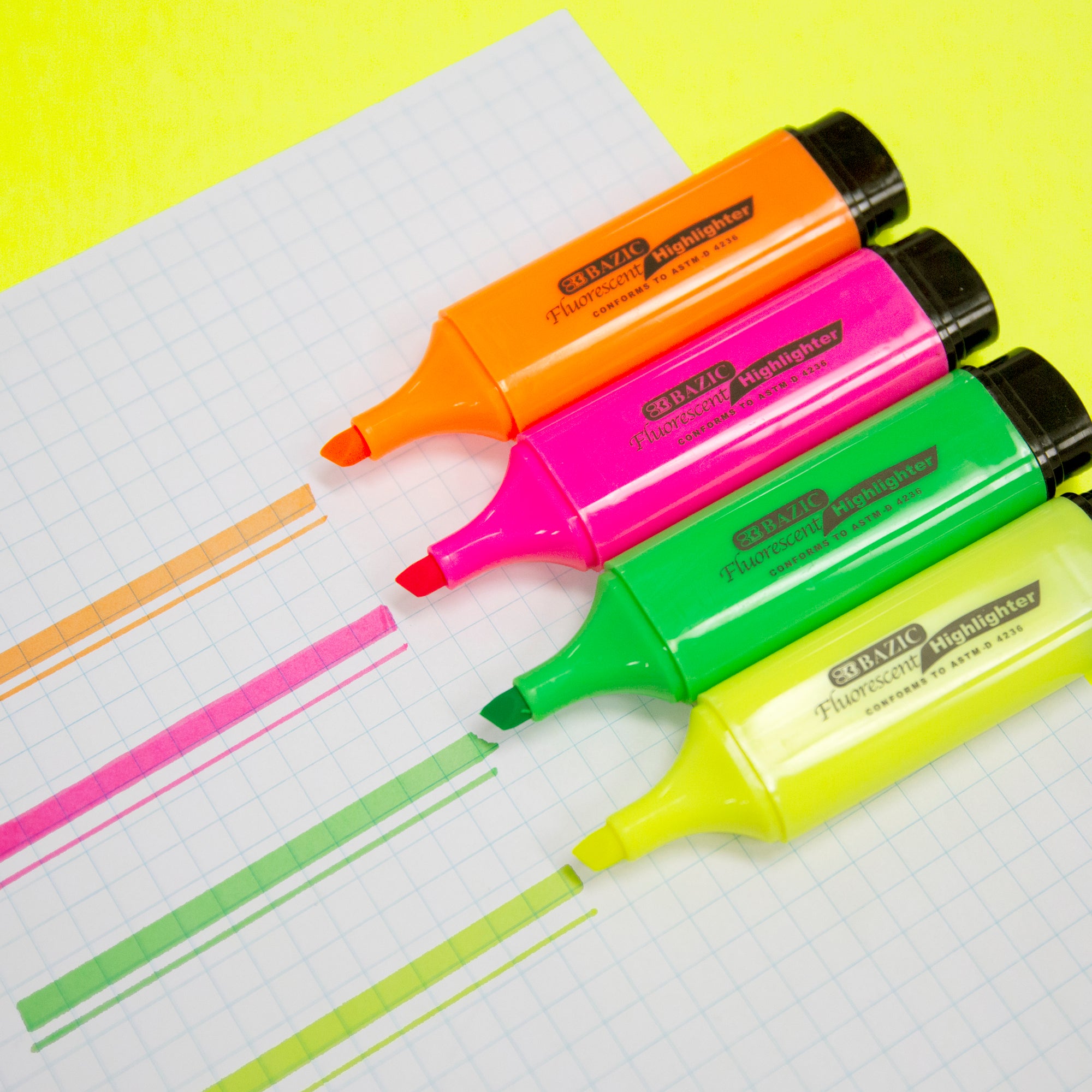 VIVID COLOR. The vivid fluorescent highlighters provide maximum impact and instantly draws your eye to the key details and important information. Barrel color indicates ink color.