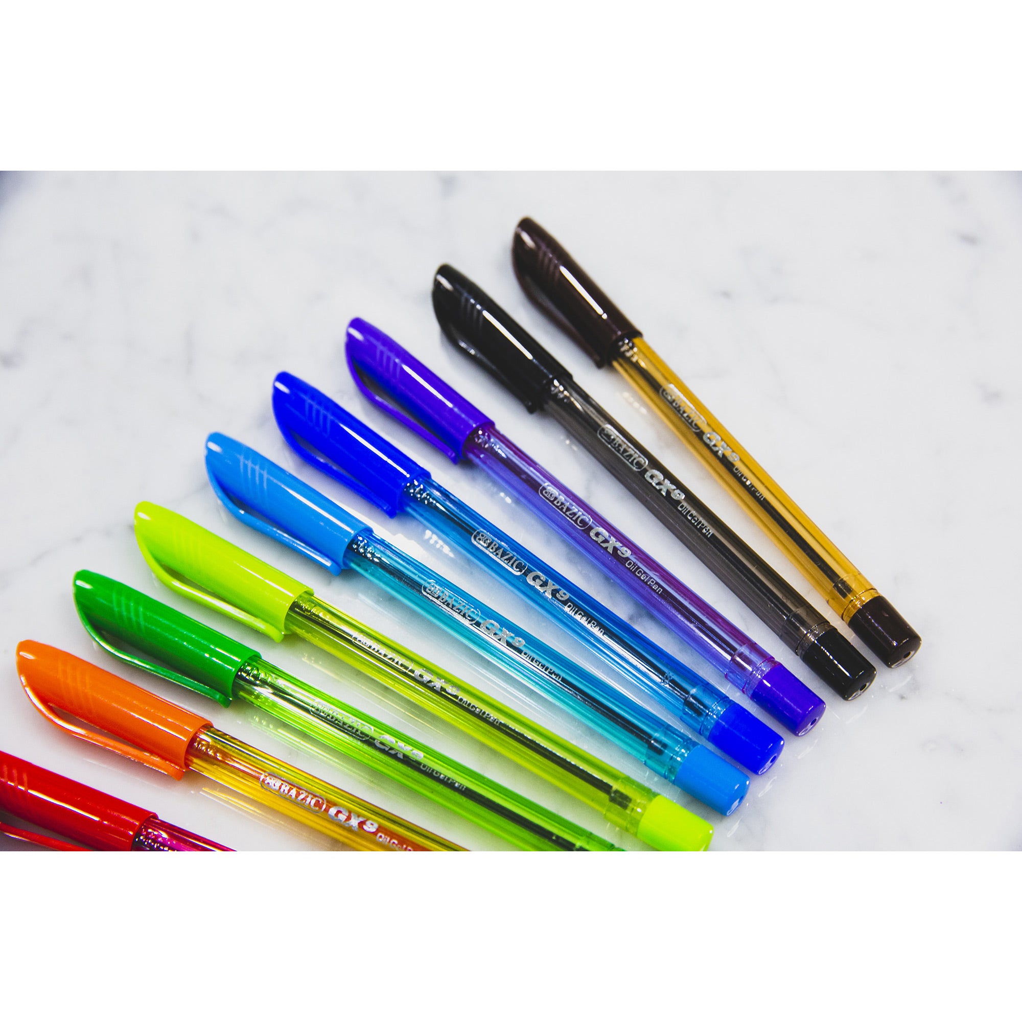 GX-9 BLACK OIL-GEL PEN. Each pack includes 10 GX-9 Black Oil-Gel Pens. The bold point spreads ink evenly as you write, offering dependable performance for everyday use.