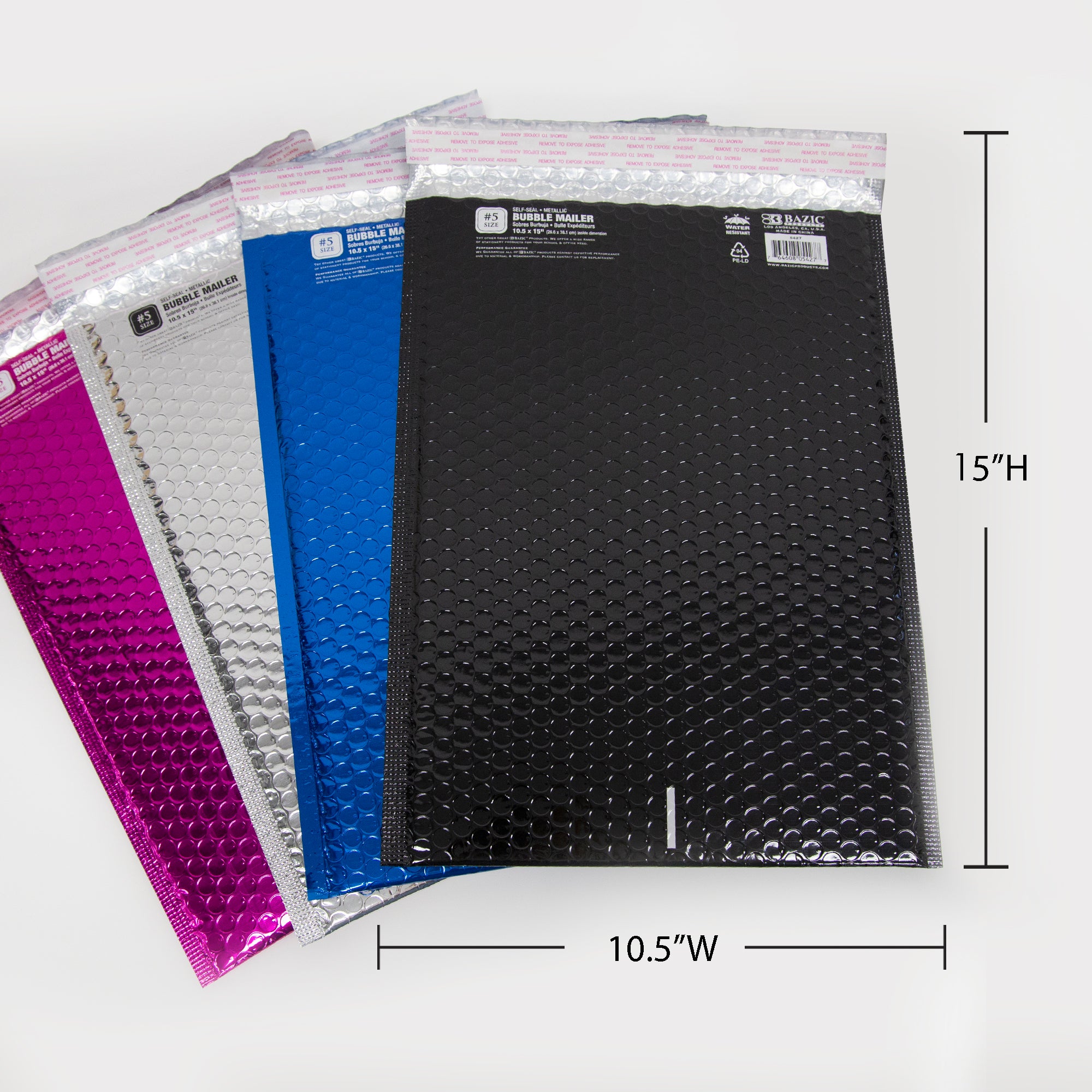 #5 METALLIC SELF-SEAL BUBBLE MAILERS. 10.5″ x 15″inch; Our color poly bubble mailers are sure to set your business apart from the rest. Build a lasting impression that’ll keep your customers coming back.