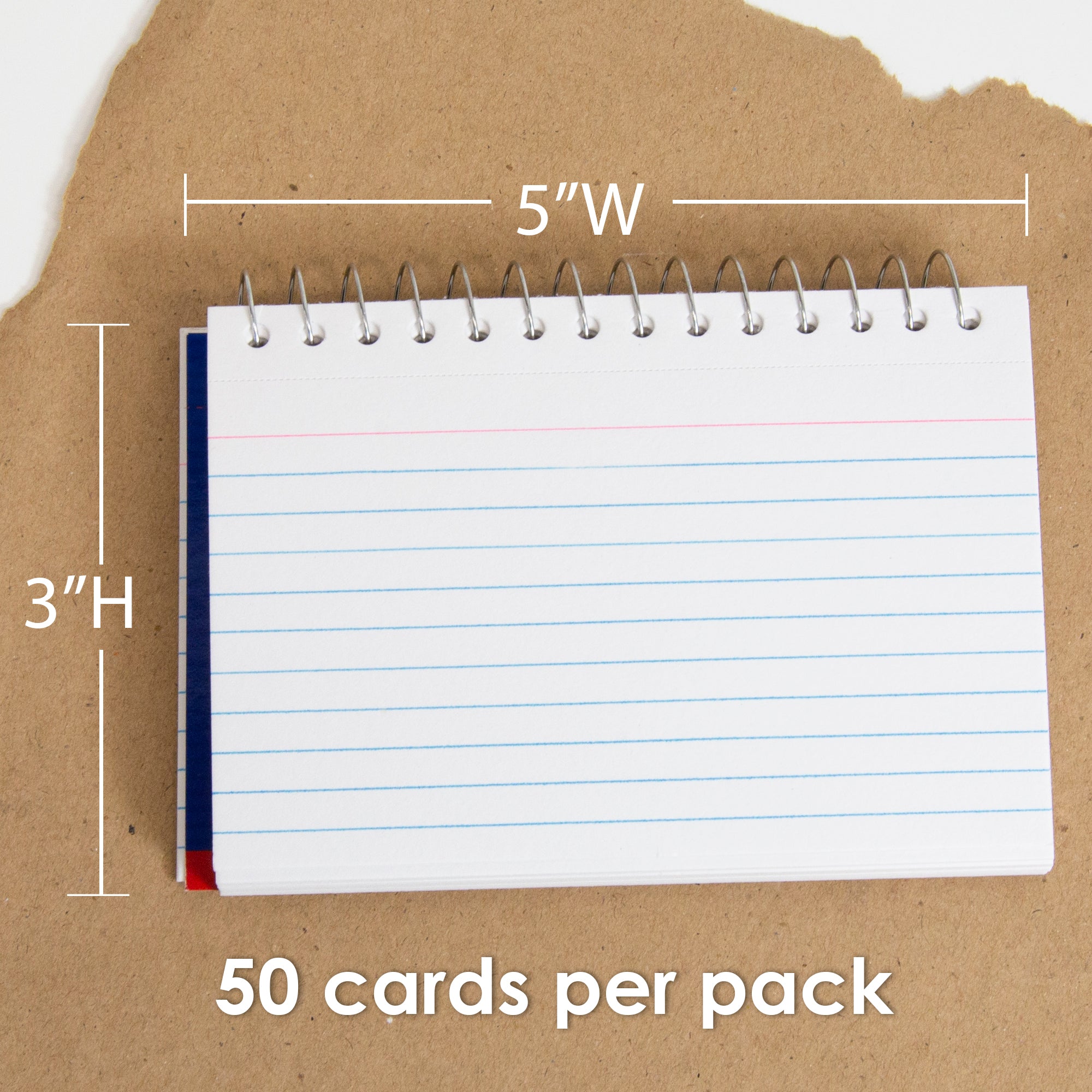 PACKAGE INCLUDES. Spiral bound ruled white index cards come with 50sheets in total per pack. Index cards have a ruled front and plain back. Size: 3″x5″inch- 7.6cm x 12.7cm