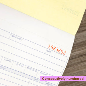 CONSECUTIVELY NUMBERED. The unique large 6-digit receipt numbers printed in red helps you easily locate orders. Easily customize by using the extra space for your company stamp.
