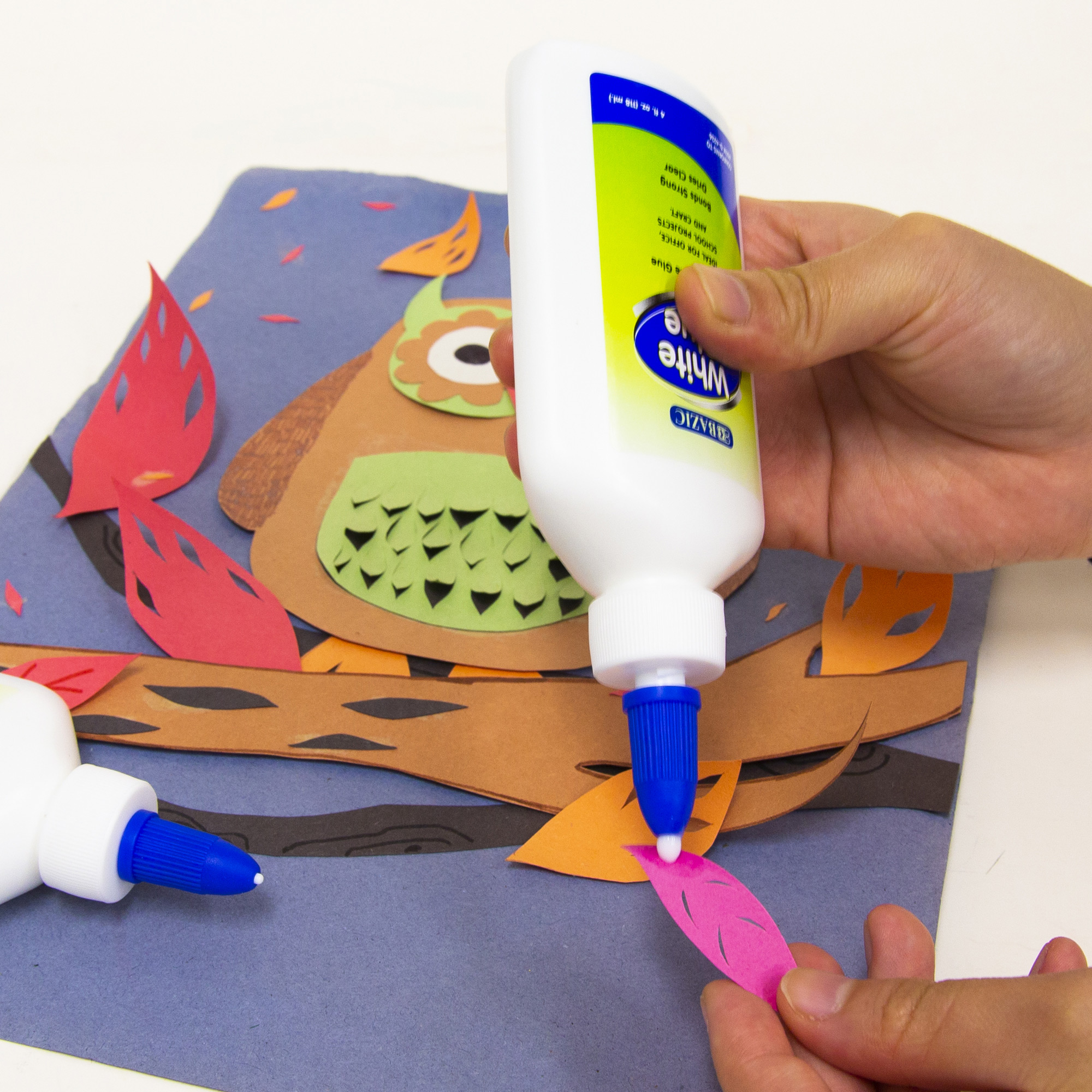• EASY TO USE. White glue features a twist closure and applicator. Simply squeeze the plastic bottle, apply the proper amount of glue on the paper, and bond it with another subject. Dries clear and applies smoothly.