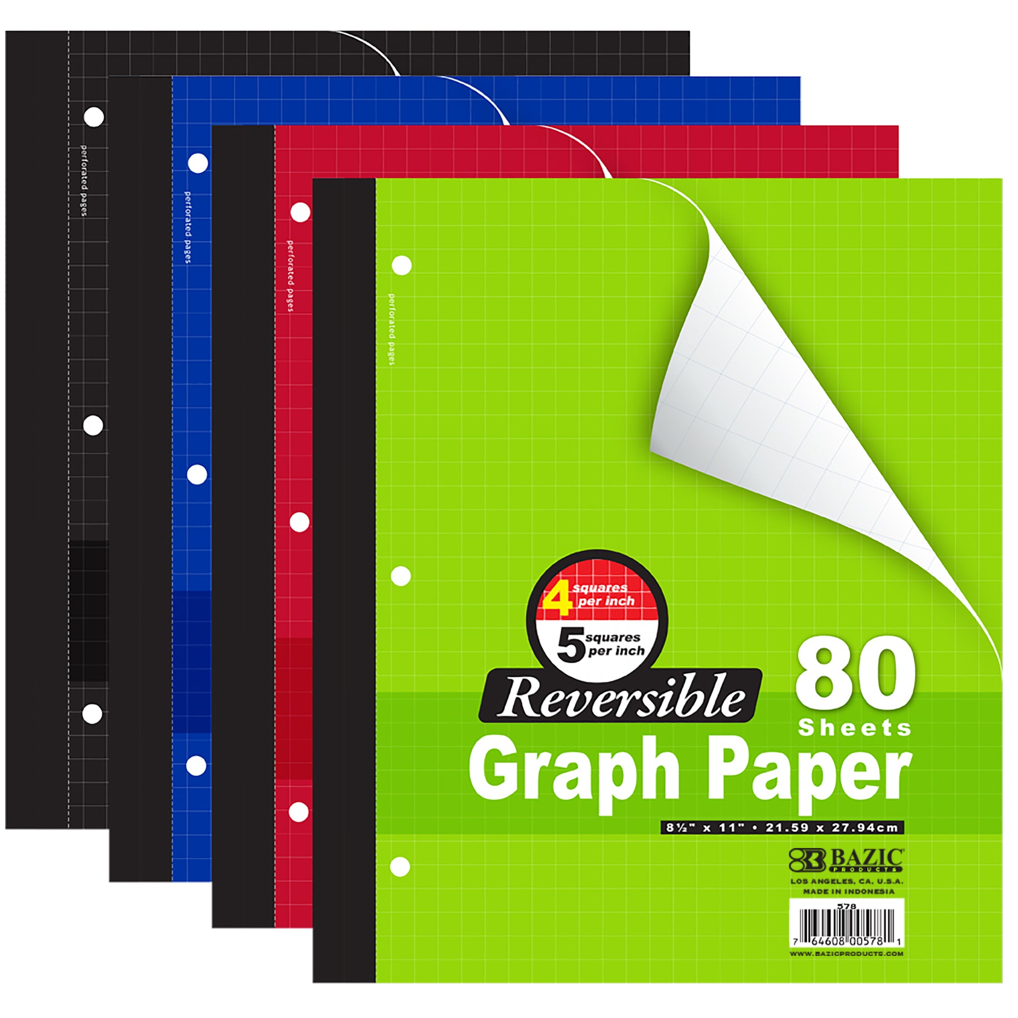SIMPLY NOTETAKING. Wireless quad-ruled notebooks come with 80 sheets of paper featuring four squares per inch. Each set comes with 4 assorted color covered notebooks. Overall size: 8.5″ x 11″ inches.